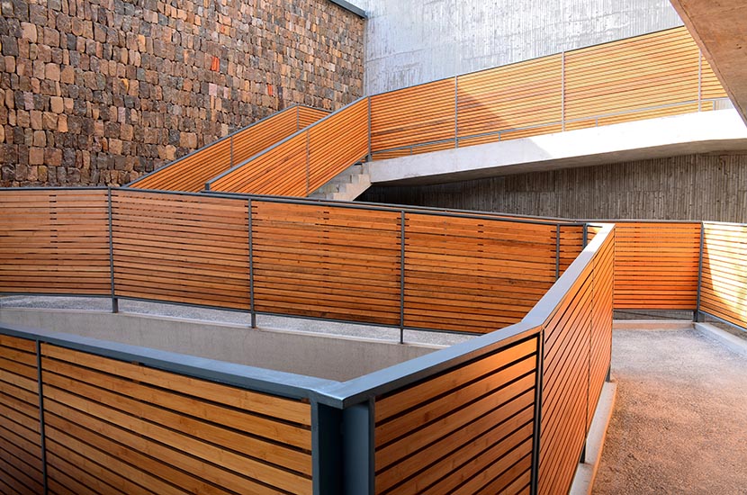 美術(shù)館大量運(yùn)用桃花江戶外防腐竹材和室內(nèi)裝飾竹材,是典型的竹元素主題建筑,在文化場(chǎng)所的建設(shè)中竹材是設(shè)計(jì)師表達(dá)設(shè)計(jì)文化內(nèi)涵的有力工具。