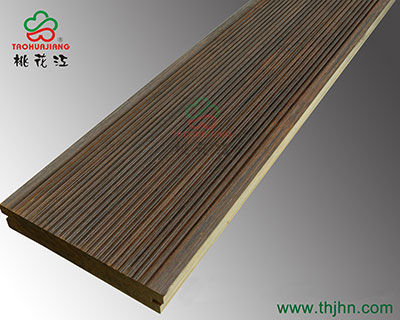 桃花江戶外重竹地板顏色為碳化色,根據(jù)碳化的時間與溫度,可以分成深碳,淺碳,和中碳。目前比較多的是中碳,色調(diào)溫和美觀。