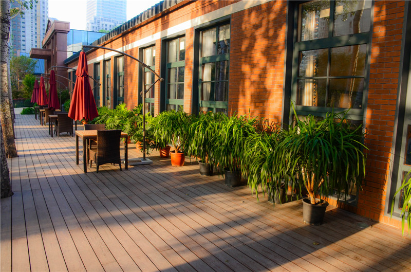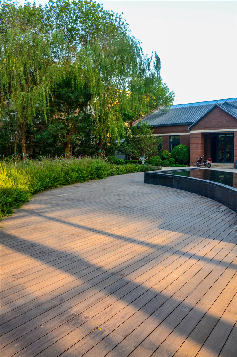 天房六合國(guó)際是由天津本土的房地產(chǎn)商天房集團(tuán)建設(shè)的,天房六合國(guó)際位于天津河西區(qū)新八大里的六里地塊。桃花江竹材科技的戶(hù)外高炭防腐竹地板在該項(xiàng)目的沿街道路,園林景觀中大量運(yùn)用,在陽(yáng)光照耀下,地板與紅磚墻相互輝映,四周綠植鮮花環(huán)繞,樹(shù)木鑲嵌其中,頗有一股歐式小鎮(zhèn)的韻味。